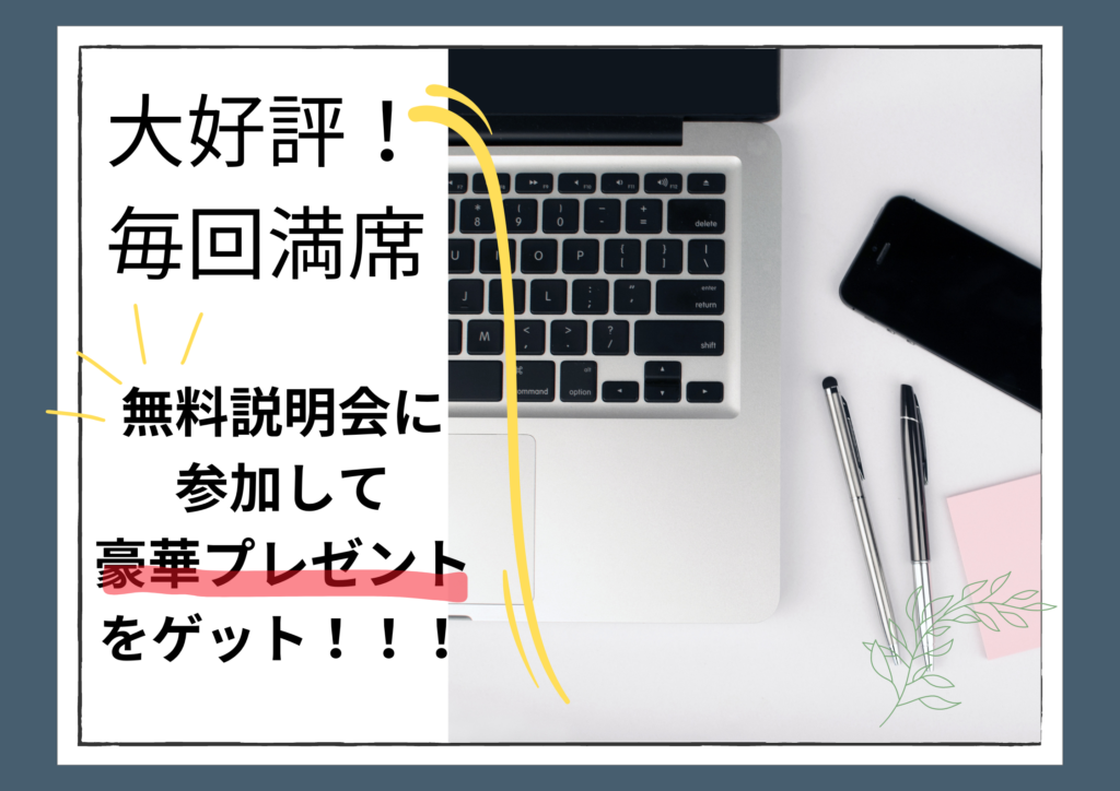 また、説明会にご参加いただいた方には有料級のプレゼントをお渡ししております。